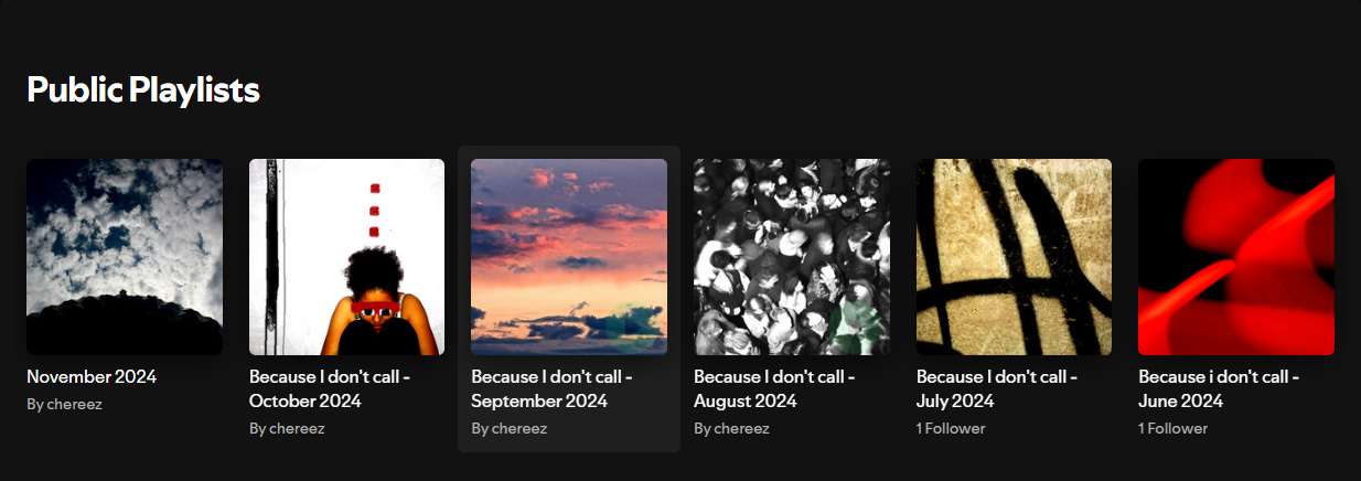 A few months ago, I started an intimate series of playlists on Spotify called ”Because I don’t call”, volatile collection of songs suggested in a narrative form to the listener. My friends essentially, because … I never call them. I know that’s a story for another time.